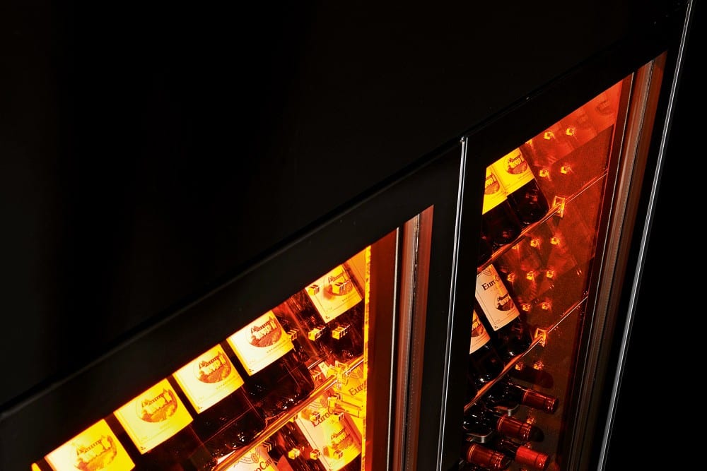 - Ondanks dat de glasdeuren zijn behandeld om uv-stralen tegen te houden, komt er (slechts!) 2% de wijnkast binnen